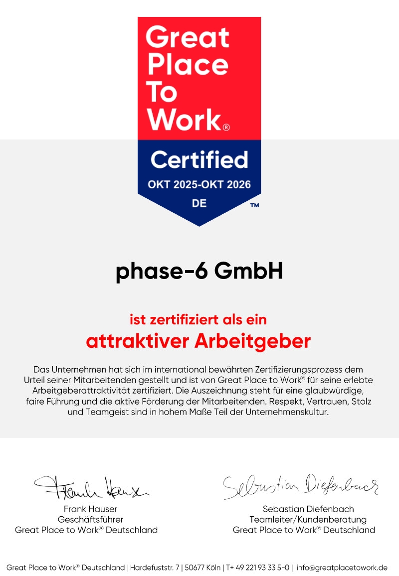 phase6 - ist zertifiziert als ein attraktiver Arbeitgeber