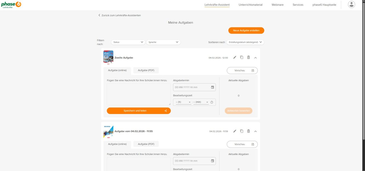 Das Lösen der Aufgaben durch die Schüler:innen kann in jedem Internetbrowser erfolgen – am Computer oder Mobilgerät. Die Bearbeitung ist kostenfrei und die Schüler:innen benötigen keinen phase6-Account.
